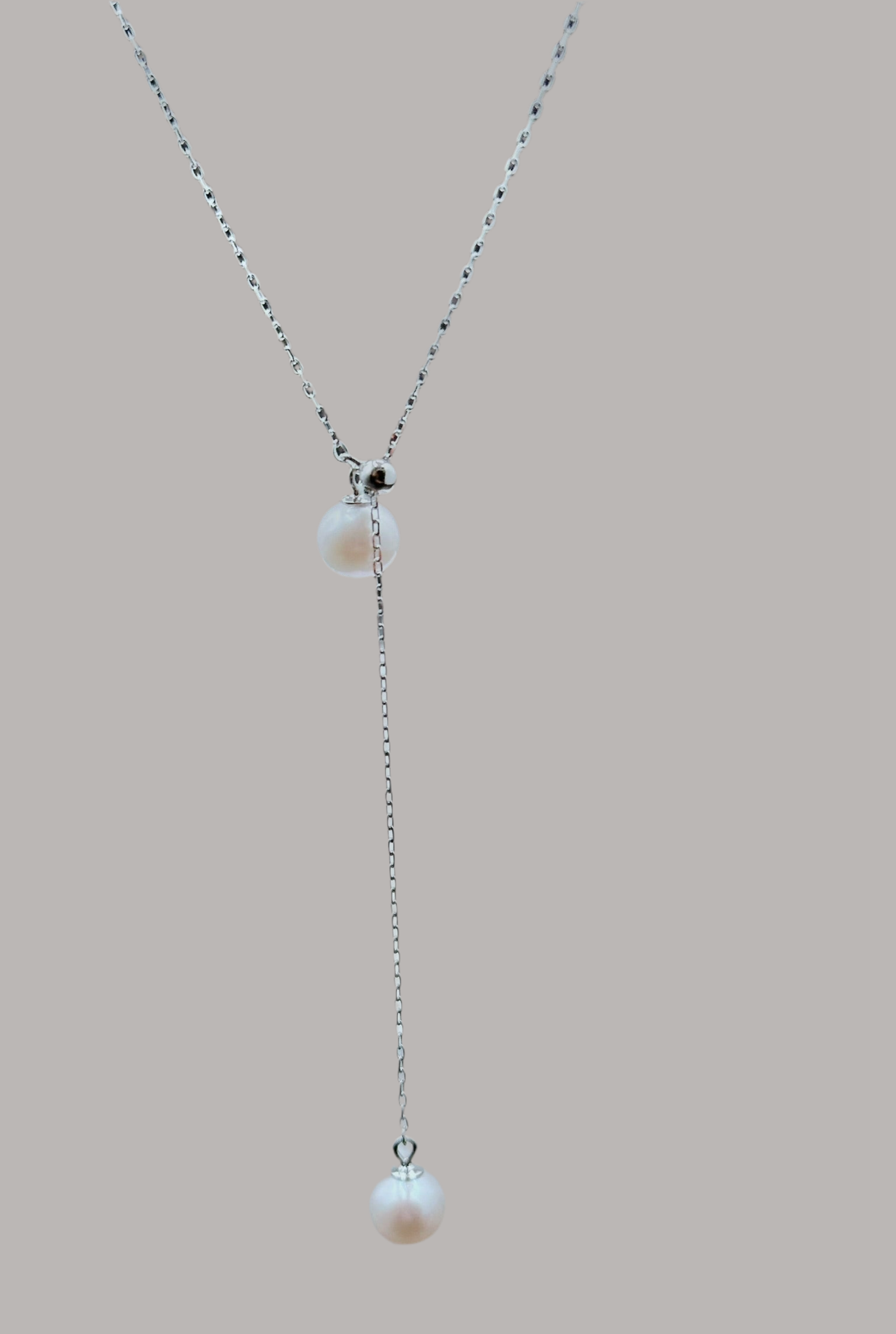 Introducing our Elegant Double Drop Pearl Pendant Necklace, a piece that combines timeless elegance with a touch of modern sophistication. This necklace features two beautifully matched pearls set in a delicate drop design, suspended from a fine sterling silver chain. The clean, flowing lines of the chain enhance the natural beauty of the pearls, creating a stunning visual cascade that adds a luxurious touch to any outfit.