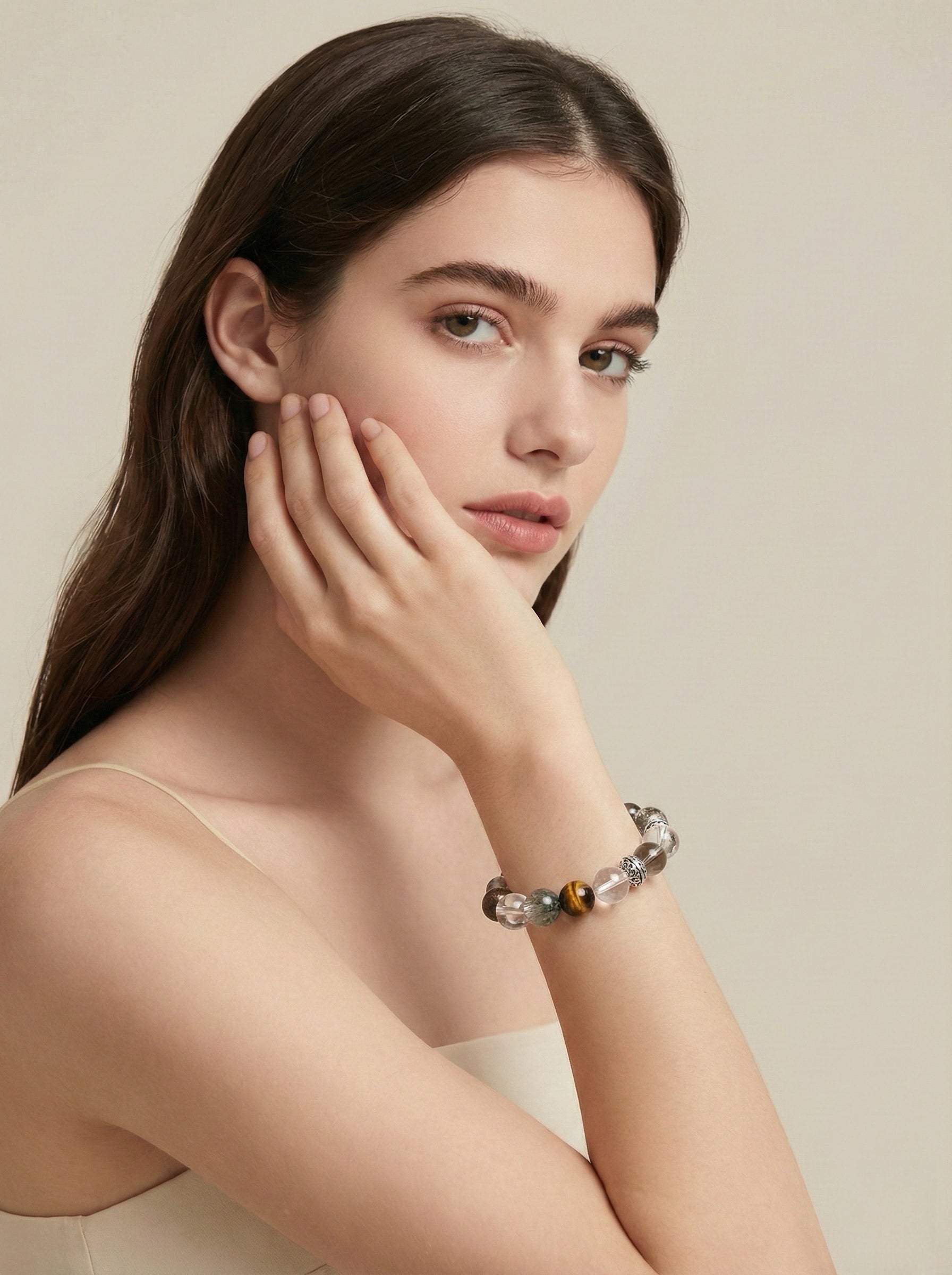 • Clarity & Grounding: 14mm Clear Quartz, 12mm Smokey Quartz.