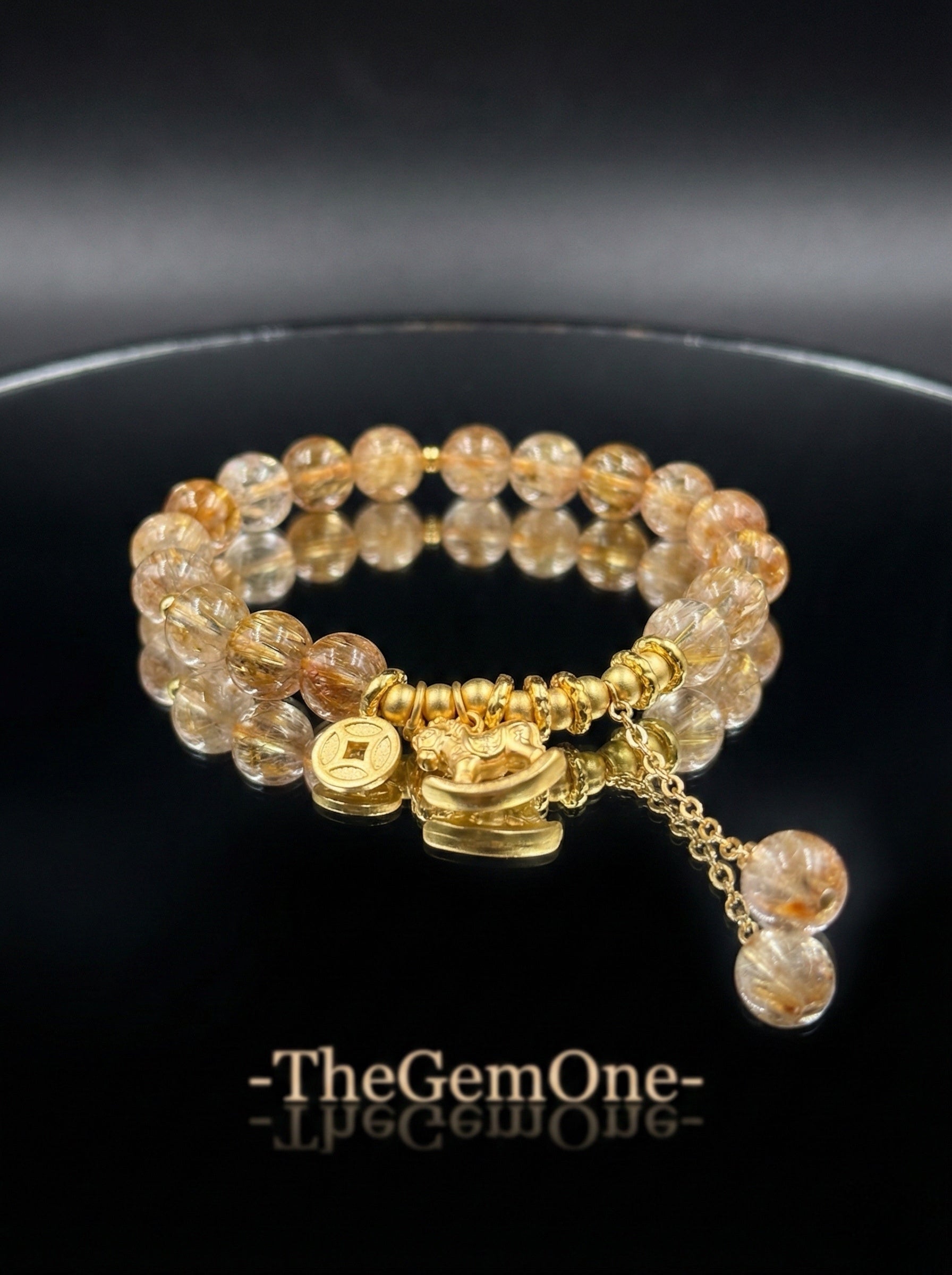 Paired with the traditional "Ma Shang You Qian" charm, this bracelet is a double blessing: steady growth from the crystal, and fast, immediate wealth from the charm.